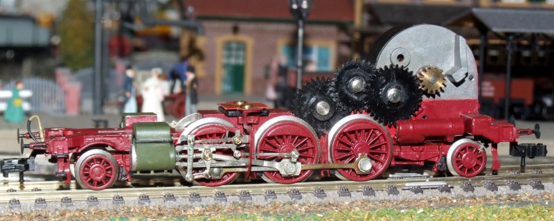 Heizerseite. Die an die Kuppelräder angegossenen Zahnkränze sind deutlich sichtbar.