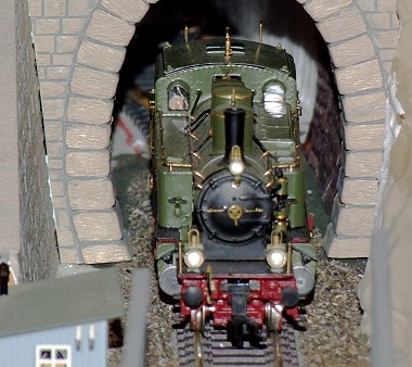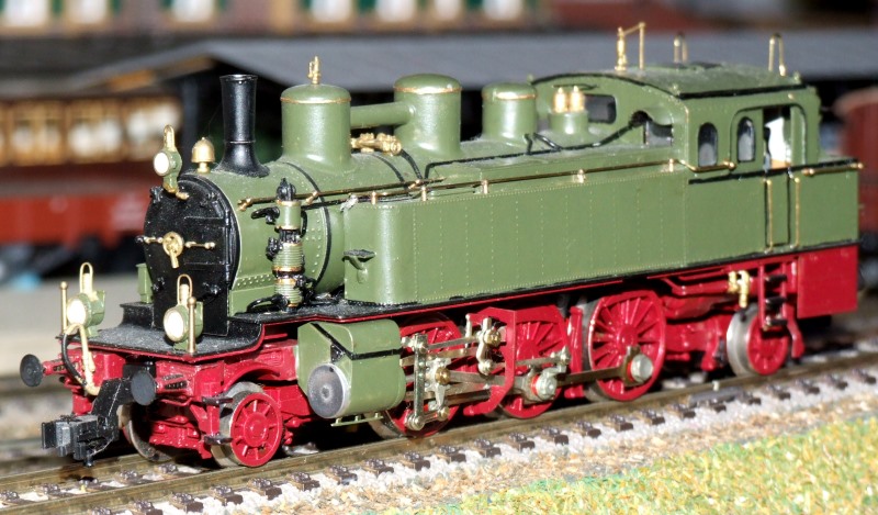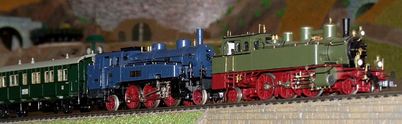 Hier leistet die VIb gerade ihrer Nachfolgerin, der Heißdampfpersonenzuglok VIc, Vorspann auf einem steigungsreichen Streckenabschnit. Die VIc ist hier in einer der zahlreichen Fantasiefarben der Modellbahnindustrie dargestellt.