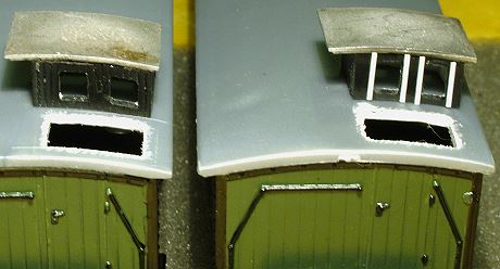 Der Bausatz enthält lediglich zwei Bremserhausdächer und ein Seitenteil (Zinkguss). Der Rest muss also selbst angefertigt werden.