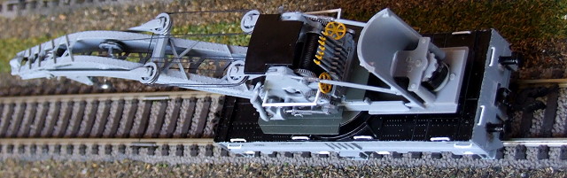 ![]() Der Anfang ist gemacht. Der Wagenkasten ist im Groben montiert. Rechts sieht man bereits den Kupplungsträger, der eigentlich für eine Kadee-Kupplung vorgesehen ist. Hier muss nun irgendwie die Fleischmann Profi Kuplung befestigt werden.