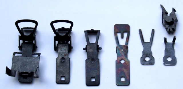 ![]() Die Kupplungsträger werden aus überzähligen Kupplungen von alten Piko Abteilwagen hergestellt. Das Bild zeigt die einzelnen Arbeitsschritte.