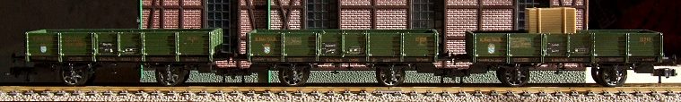 Drei Fahrzeuge im Verband. Durch den Einbau von Kurzkupplungskulissen ist der Abstand von Puffer zu Puffer akzeptabel.