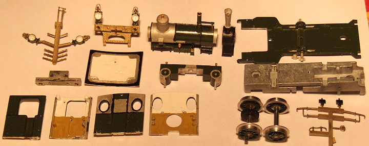 Aus diesen Teilen soll die Lok "CLOTHO" entstehen. Sie stammen von der Firma Merker und Fischer. Die Bauteile sind leichter zu bemalen, wenn dies vor dem Zusammenbau geschieht.