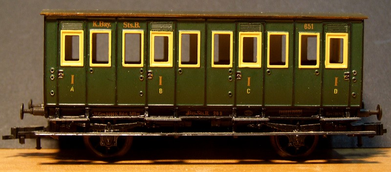 Königlich bayerischer Staatsbahnwagon I.Klasse - Bausatz von Merker und Fischer Nr. 256