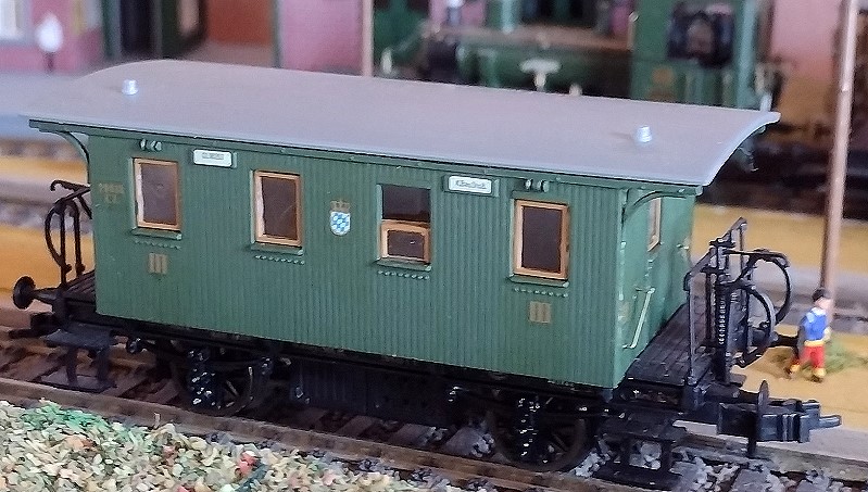Diese Wagenserie, die für die Localbahnen bestimmt war, wurde sehr einfach - ja fast spartanisch - gestaltet. So erhielten die Fahrzeuge Kerzen oder Petroleumlampen in den Stirnwänden als Beleuchtung. Die Wagen entstanden in der Zeit von 1880 bis 1886. Die Wagenbausätze der Firma Rai-Mo wurden ohne Kurzkupplungskulisse ausgeliefert. Eine Einbaumöglichkeit von Kurzkupplungskulissen der ehemaligen Firma Roco wird vorgestellt. Den Abschluss dieser Seite bilden ein paar Tip(p)s zum Einbau einer preiswerten Innenbeleuchtung. |