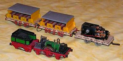 Hier sind Wagenoberteil und Fahrgestell - noch ohne Räder - schon einmal probehalter zusammengefügt. Am Untergestell sind fehlende Aufstiegstritte ersetzt worden.
