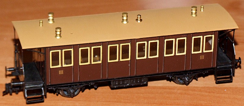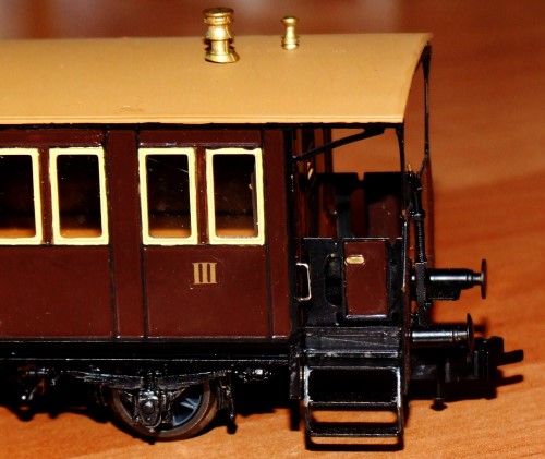 Leider hat der Verantwortiche der Preiserlein Bahnverwaltung den Wagen so nicht abgenommen. Er fordert aus Sicherheitsgründen Türen auf beiden Seiten der Plattform sowie einen Haltegriff auf einer Seite der Aufstiegstritte. Das wurde umgehend erledigt.