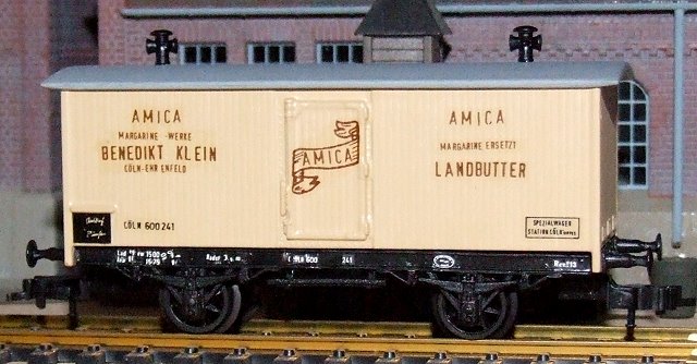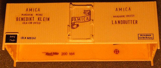 Dieser Bausatz zählt mit zu den letzten von Rai-Mo ausgelieferten Bausätzen. Er ist baugleich mit dem bayerischen Margarinewagen aus dem Bausatz Rai-Mo 200 102. Völlig neu sind die Schiebebilder, die sich nunmehr auf einer extrem dünne Folie befinden (vergleichbar mit den Schiebebildern des Herstellers Pearl). Neu ist ebenfalls die Beifügung einer großen Ballastplatte. |