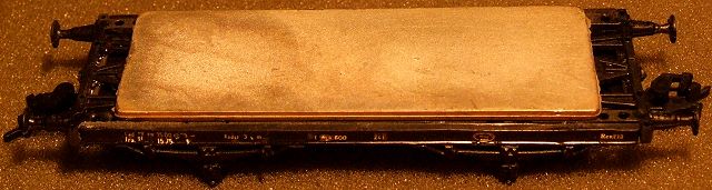 Die Ballastplatte (24 g) gibt dem Wagen das nötige Gewicht. Die Margarinewagen aus dem Bausatz 200 102 erreichen lediglich ein Gesamtgewicht von 29 g. Das geringe Fahrzeuggewicht kann bei langen Güterzügen leicht zum Umkippen in engen Kurven führen.