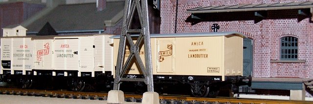 An der Laderampe. Angekuppelt ist der Wärmeschutzwagen der Gebrüder Fleischmann (5867).