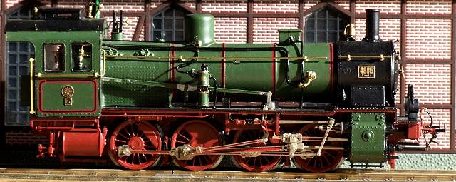 Das Fahrgestell und der Tender stammen von GFN; Kessel, Führerhaus, Teile des Umlaufs und die Kesselfeinausrüstung enthält der Bausatz von West-Model. Die Zierlinien hat die Firma Weinert beigesteuert. |