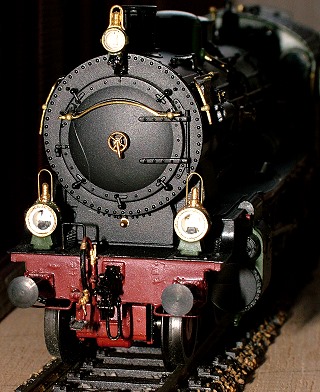 Die Originalbeleuchtung konnte im Prinzip erhalten werden. Die beiden Lampen von Gützold erhielten Drahtbügel aus 0,3 mm Messingdraht, da der Original-Kunstoffbügel doch etwas kräftig ausgefallen ist. Spitzenlicht von Reitz. Und wo sind eigentlich die Schienenräumer? | |