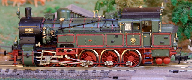 Lokführerseite. Die Radreifen habe ich schwarz gefärbt. Dadurch fallen die relativ hohen Spurkränze nicht so sehr ins Gewicht.