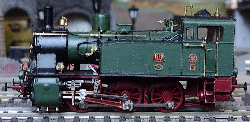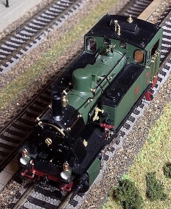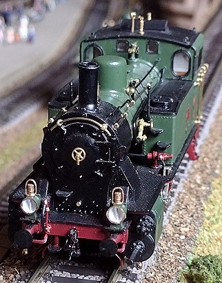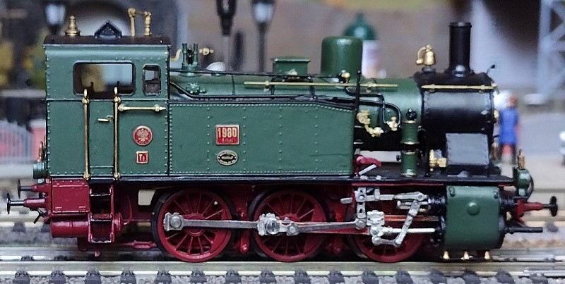 Für mich eine der häßlichsten Lokomotiven, weil die Proportionen gefühlsmäßig nicht stimmig sind. Andererseits ist die Lok wegen ihrer ausgesprochenen Häßlichkeit fast schon wieder schön. Diese Heißdampftenderlok war für den Dienst auf Nebenstrecken mit einer Geschwindigkeit bis zu 50 km/h vorgesehen. Auf der Berliner Ringbahn wurden ihr sogar 60 km/h abverlangt. Obwohl sie ein kräftiges Anzugsmoment aufwies, bewährte sie ich auf der Ringbahn nicht. Wegen der großen Überhänge war ihr Fahrverhalten sehr unruhig. Für den Nebenbahndienst war ihre Achslast zu hoch ausgefallen. Sie fand schließlich ihr Betätigungsfeld im schweren Rangierdienst. Hier ist ein Modell aus der ersten Bauserie nachempfunden. |