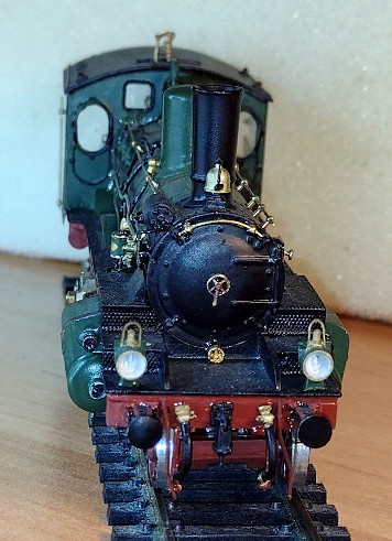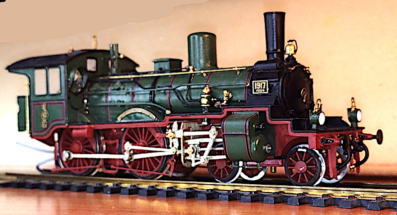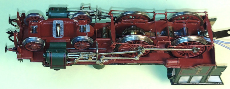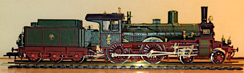 Die Hoheitszeichen am Tender und die Zierlinien sind von Weinert Der Antrieb befindet sich in der Lok. Die Tenderräder wurden zusätzlich zur Stromabnahme herangezogen. |