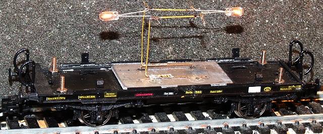 In dieses Fahrzeug war bereits eine Ballstplatte eingebaut. Da ich sie nicht lösen wollte, musste die Stromzuführung durch die Ballastplatte erfolgen. Einfacher ist es, die Ballastplatte zu teilen und an den Wagenenden anzubringen.