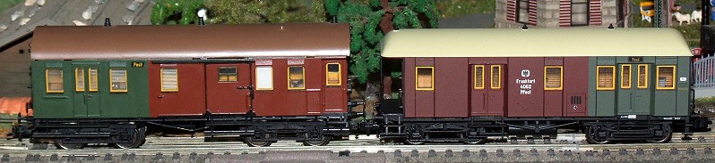Hier noch einmal die beiden ungleichen Geschwister Postabteil an Postabteil.
