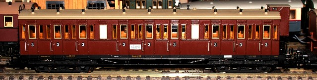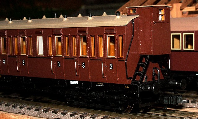 Im Frühjahr 2006 lieferte Piko den C4Sa13 in den Farben der Deutschen Reichsbahn aus. Diesen Wagen musste ich natürlich sofort auf die Epoche I umfrickeln. Außerdem erhielt der Wagen einen Innenanstrich und eine elektrische Beleuchtung mit vier paralell geschalteten Glühlampen. Den Abschluss dieser Seite bilden ein paar Tip(p)s zum Einbau einer preiswerten Innenbeleuchtung. |