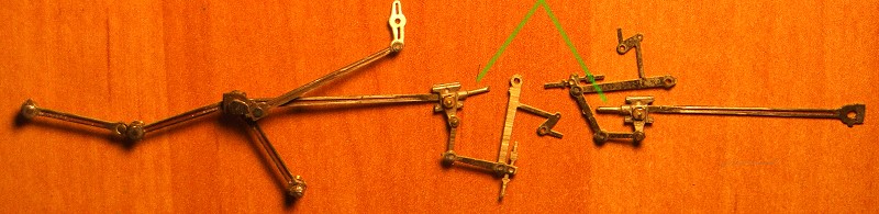 Das Gestänge muss noch überarbeitet werden. Bemerkenswert ist die Länge der Kolbenstangen (grüne Hinweislinien). Hier muss Ersatz geschaffen werden.