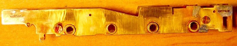 Die Rahmenwangen sind montiert (verschraubt und verlötet). Die Achsen laufen in starren Lagersteinen. Im Anlagenbetrieb werden also durchschnittlich drei Räder Kontakt zu den Schienen haben. Die angetriebene Achse sollte immer Kontatkt zu den Schienen haben. Deshalb werden die eingelöteten Lagersteine des ersten und dritten Radsatzes so befeilt, dass die Achsen Seiten und Höhenspiel haben. Gleichzeitig sollen diese Achsen gefedert werden. Der Schwerpunkt der Lok wird kurz hinter der angetriebenen Achse liegen. Durch diese Maßnahmen hat die angetriebene Achse ständig Kontakt zu den Schienen und die zarten Kuppelstangen werden entlastet. Ok, eine Dreipunktabstützung ist das natürlich nicht.