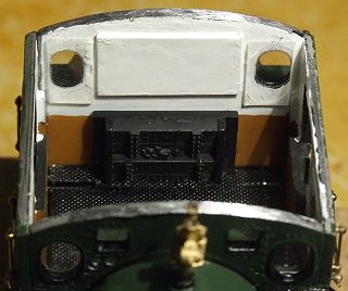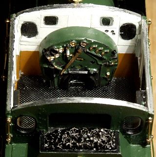 Zwei Blicke in das Führerhaus, bevor es mit dem Dach verschlossen wird. Die Rückseite des Stehkessels ist wie üblich farbenprächtig ausgeführt.