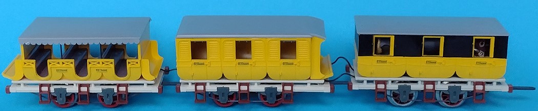 Der Antrieb befindet sich im rechten Personenwagen. Die beiden linken Personenwagen dienen der Stromaufnahme. Die Antriebseinheit wurde von Trix auf das Zweileiter-Gleichstromsystem umgestellt. | |