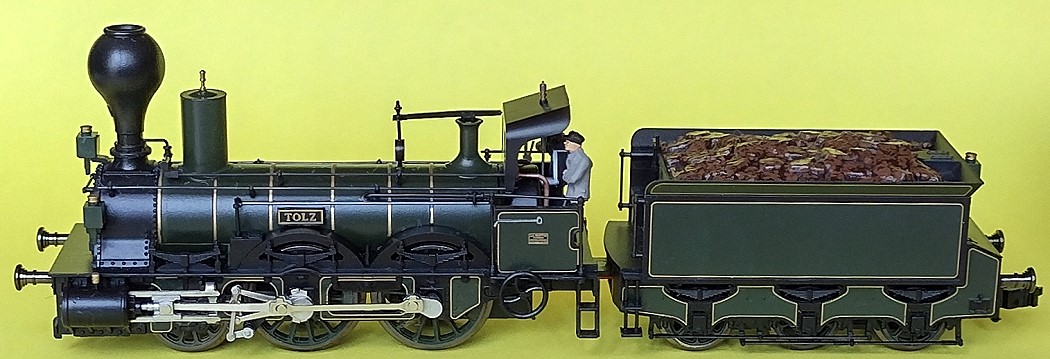 Die ersten ab 1863 gelieferten Maschinen erhielten neben einer Dampfstrahlpumpe auch eine Dampfpumpe, was am Schwungrad auf der Heizerseite zu erkennen ist. | |