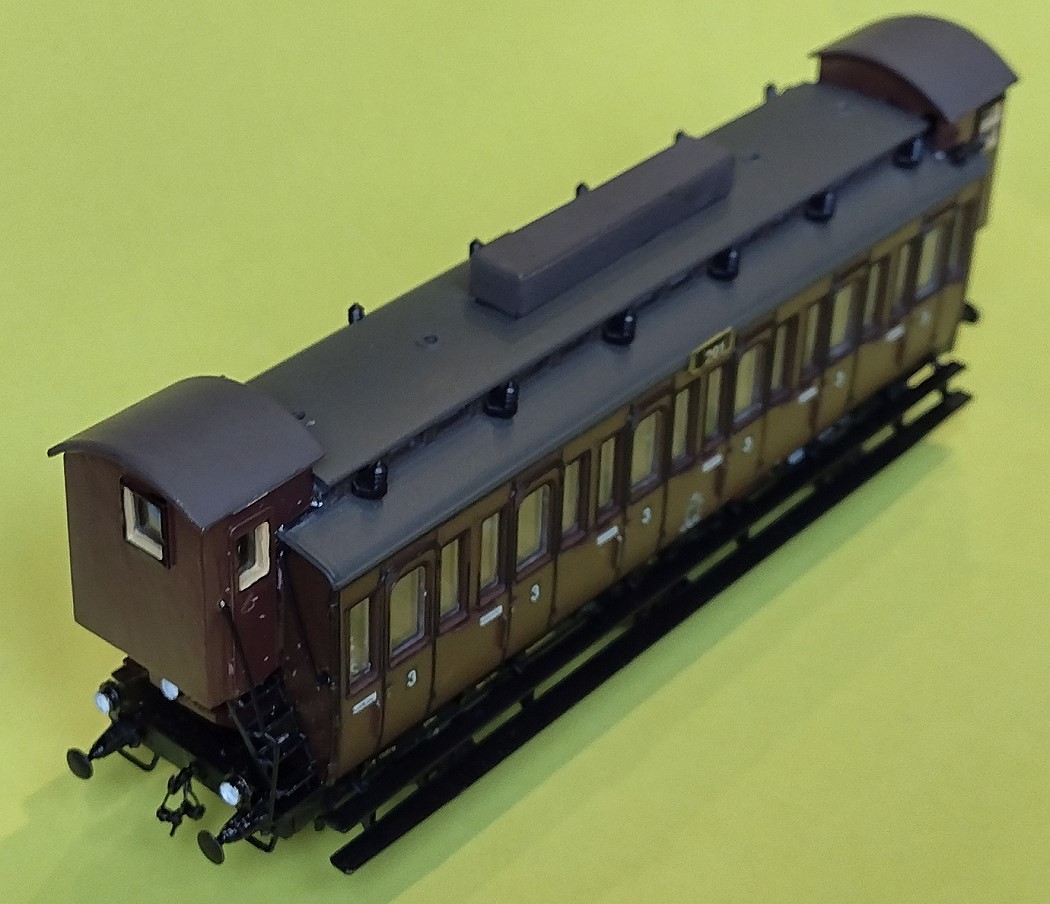 ![]() 1907 AT1 Akkumulator-Versuchstriebwagen A1A K.P.E.V. Handarbeitsmodell von westmodel 13093 auf der Basis des Roco Abteilwagens |