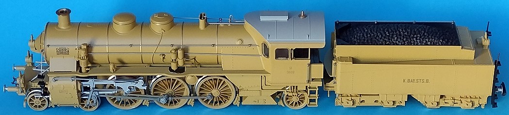 Nachgebildet ist die zweite S3/6, die in ockergelber Farbe zur Austellung "München 1908" kam. Führerhaus und Rauchkammertür sind "windschnittig" ausgelegt. | |