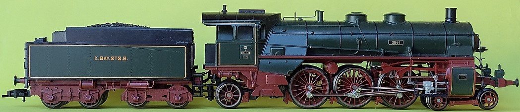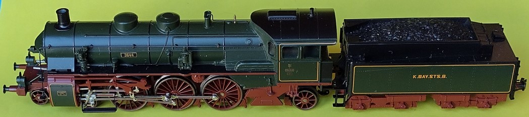 ![]() 1908 S3/6 Schnellzuglok 2'C1'h4v K.Bay.Sts.B. Fertigmodell von Rivarossi 5203, von Märklin 3818 |