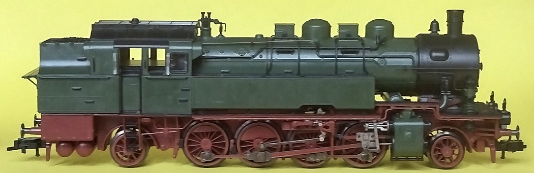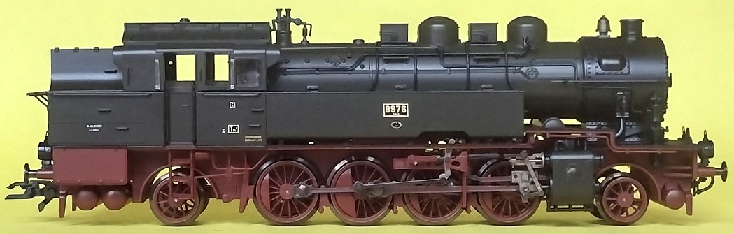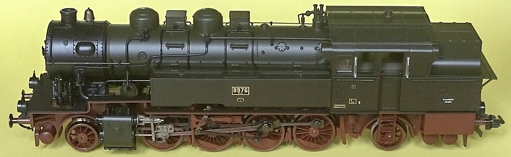 Ein umgefärbtes Modell der DB von Roco 43320. Gegenüber dem oben abgebildeten Modell weist der Schornstein einen Aufsatz auf. | |
