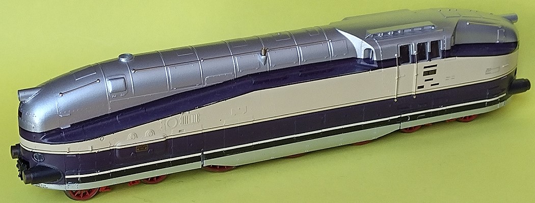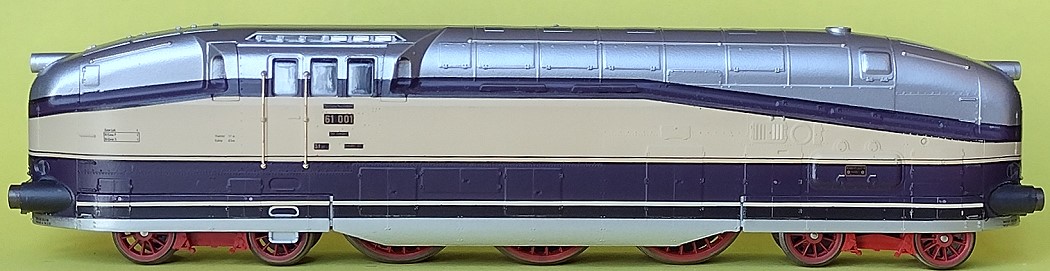 Ein Beispiel für eine vollverkleidete Stromlinienlok. Die Schwesterlok 61002 gab Teile ihres Fahrwerks für die Lok 18201 her. | |
